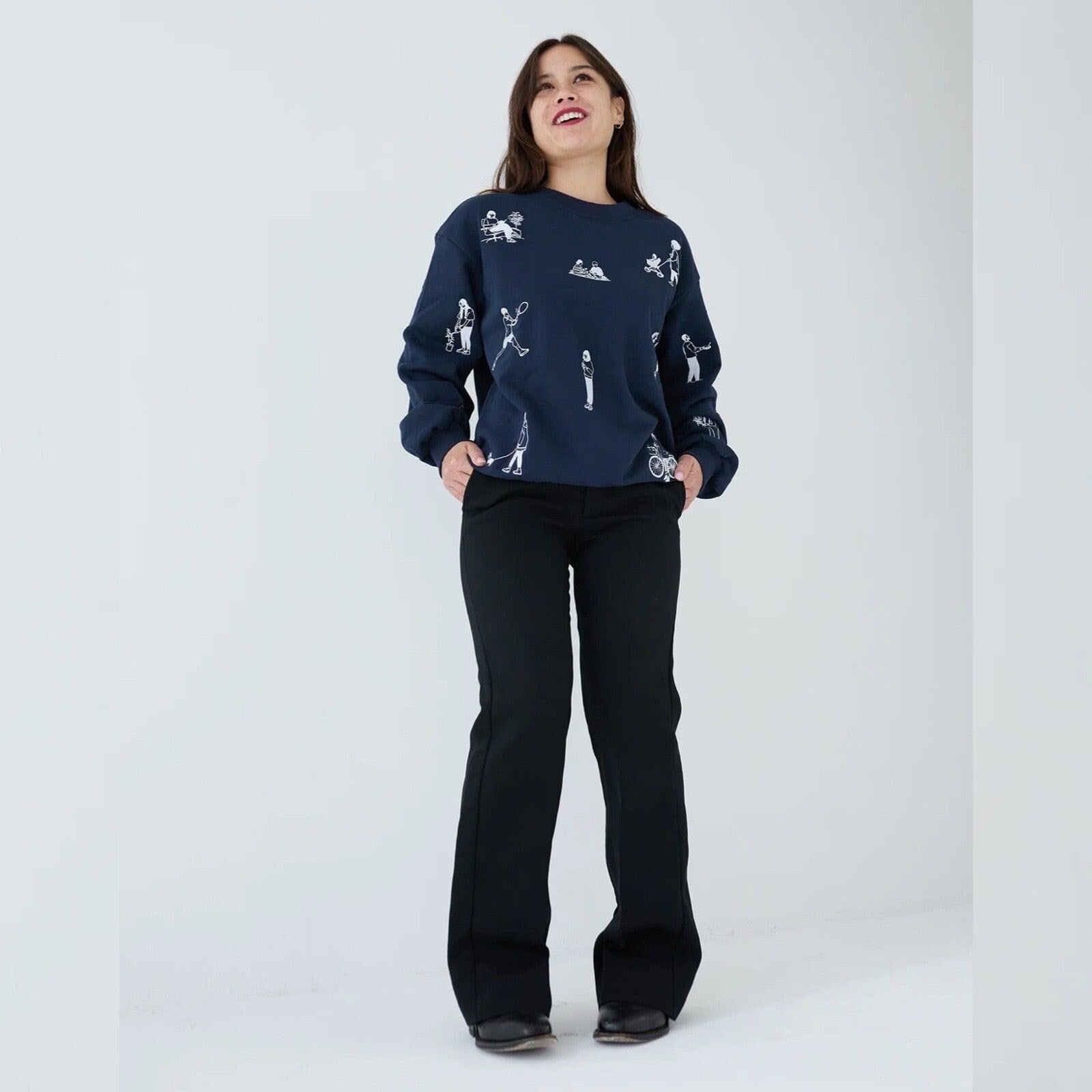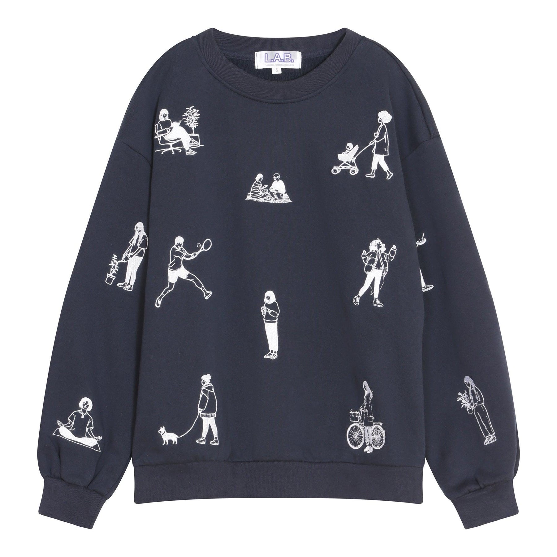 A thoughtfully crafted unisex jumper featuring 12 embroidered scenes of daily activities, from dog walking to yoga. Made in our atelier from heavyweight organic cotton, this oversized piece brings character to your everyday wear. This wouldmake a great unisex gift.