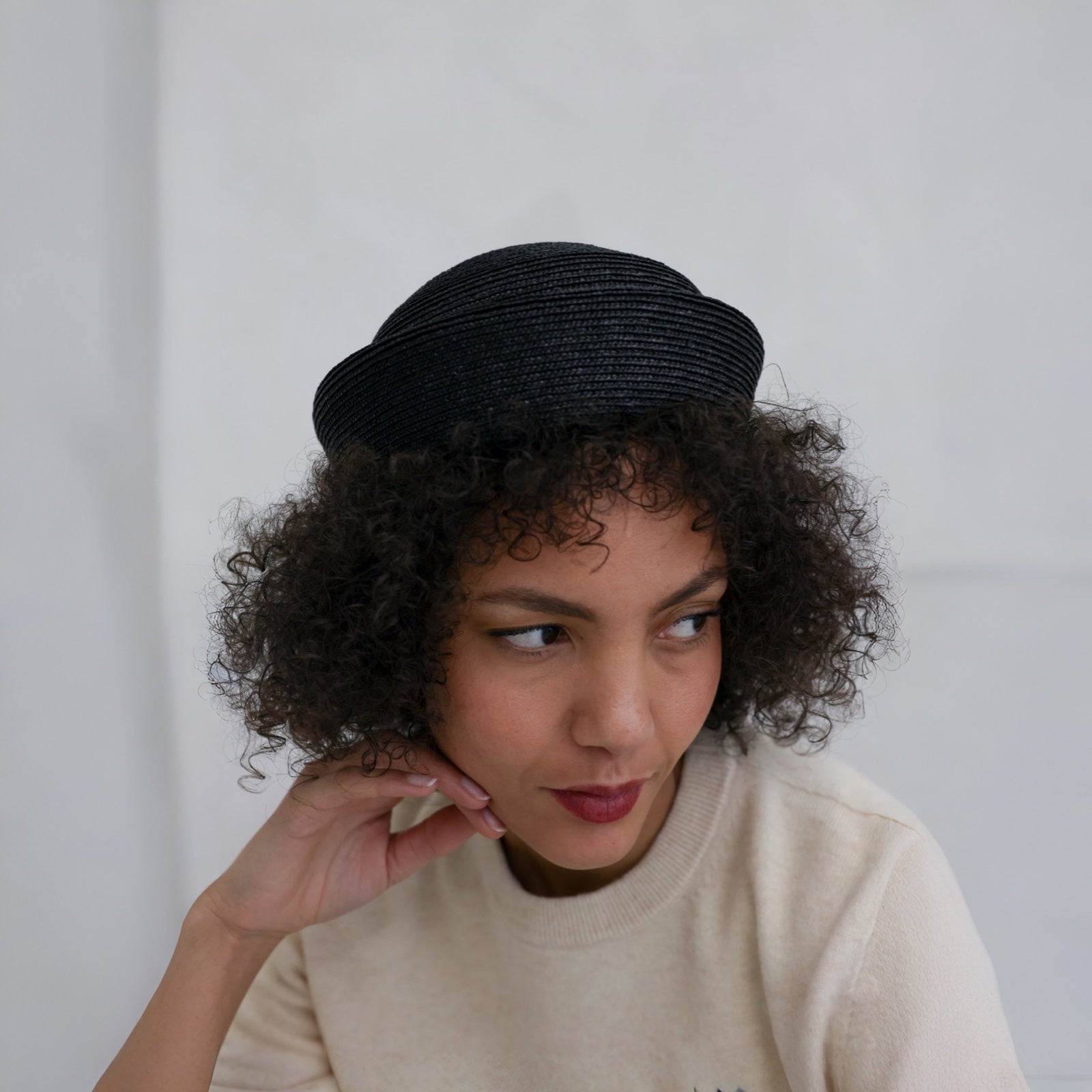 Black Straw Pillbox Hat