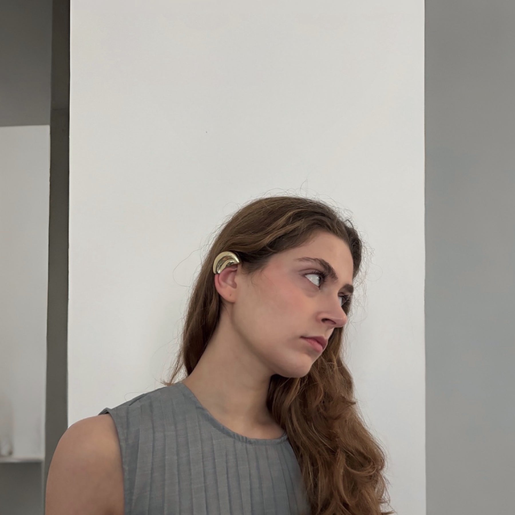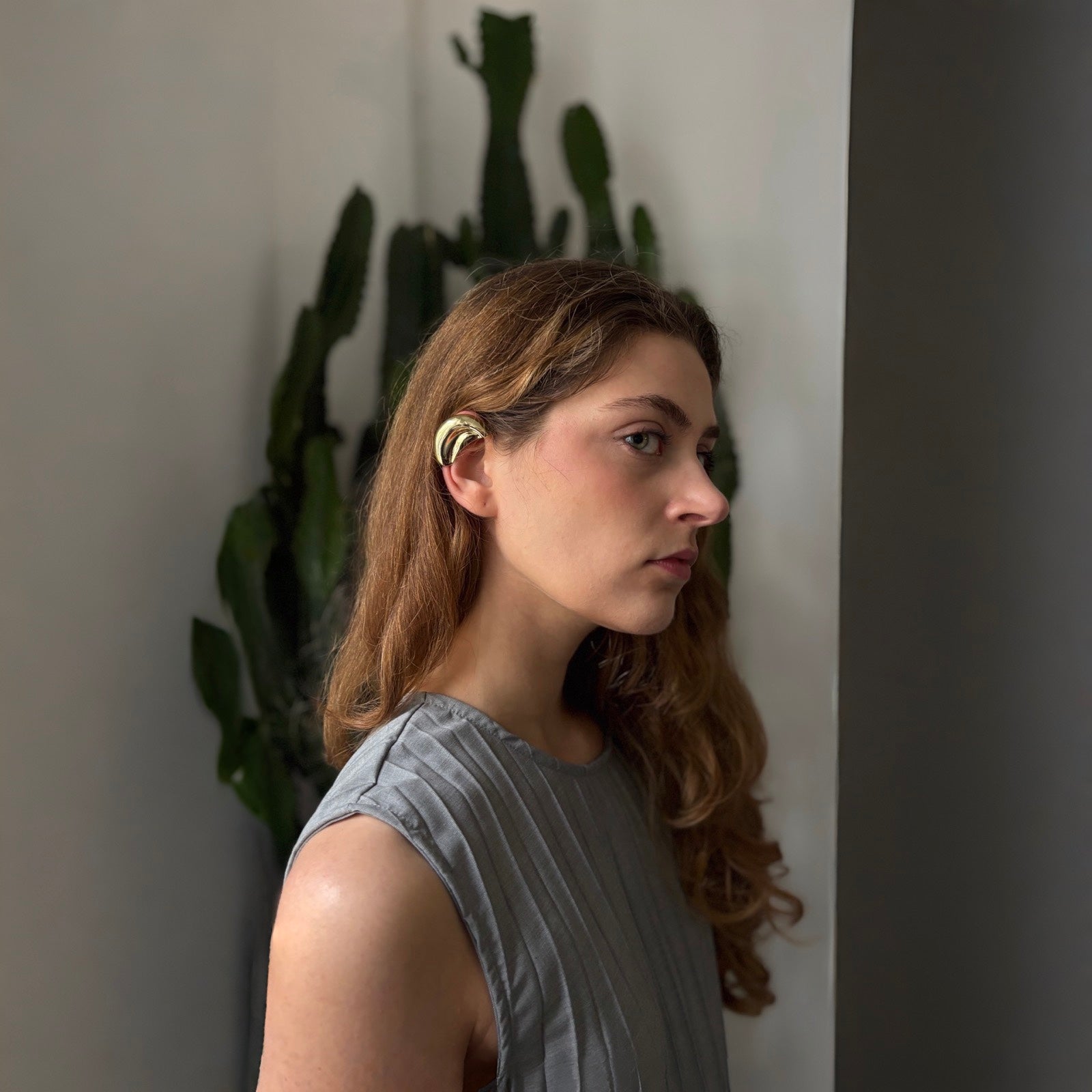 A sleek ear cuff that slides onto your right ear without needing a piercing. The modern design creates an effortless look that works for both casual and dressy occasions.