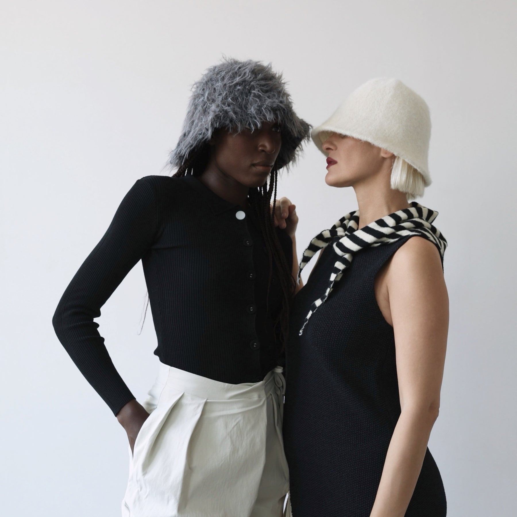 White wool cloche bucket hat