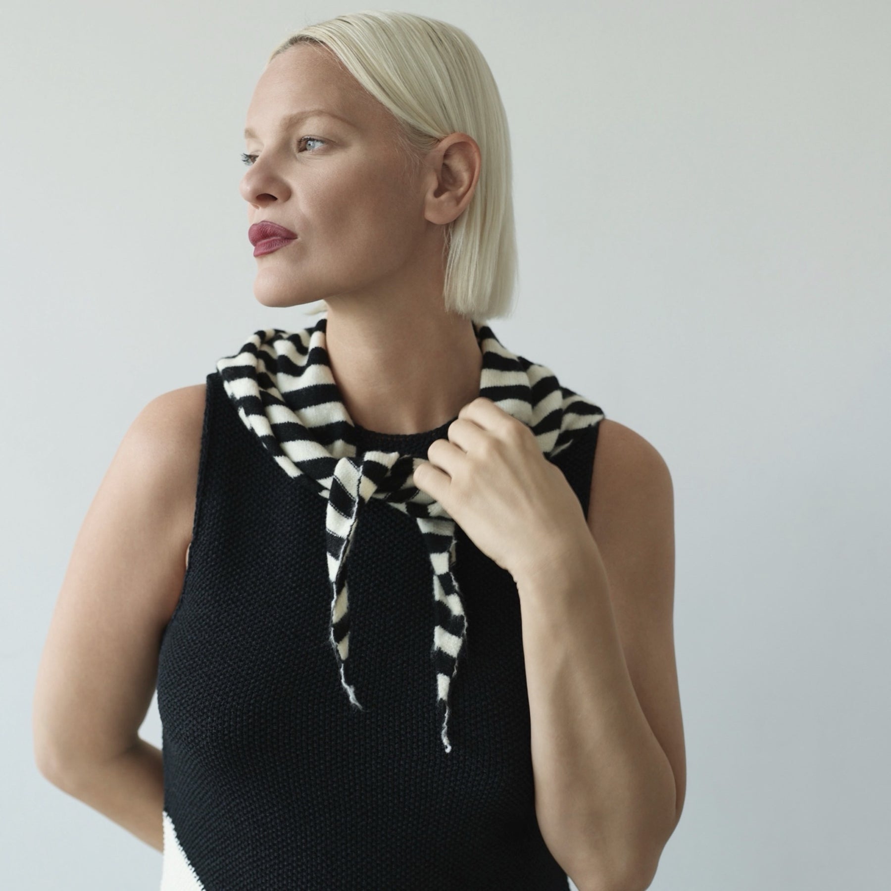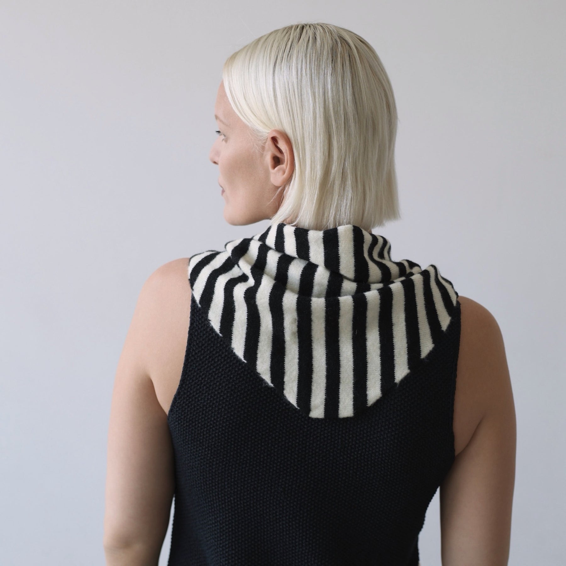 A versatile knit accessory crafted in soft black-and-white stripes. Designed to layer effortlessly over everyday staples.